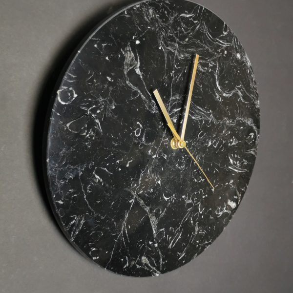 Okrągły zegar ścienny z marmuru Nero Marquina